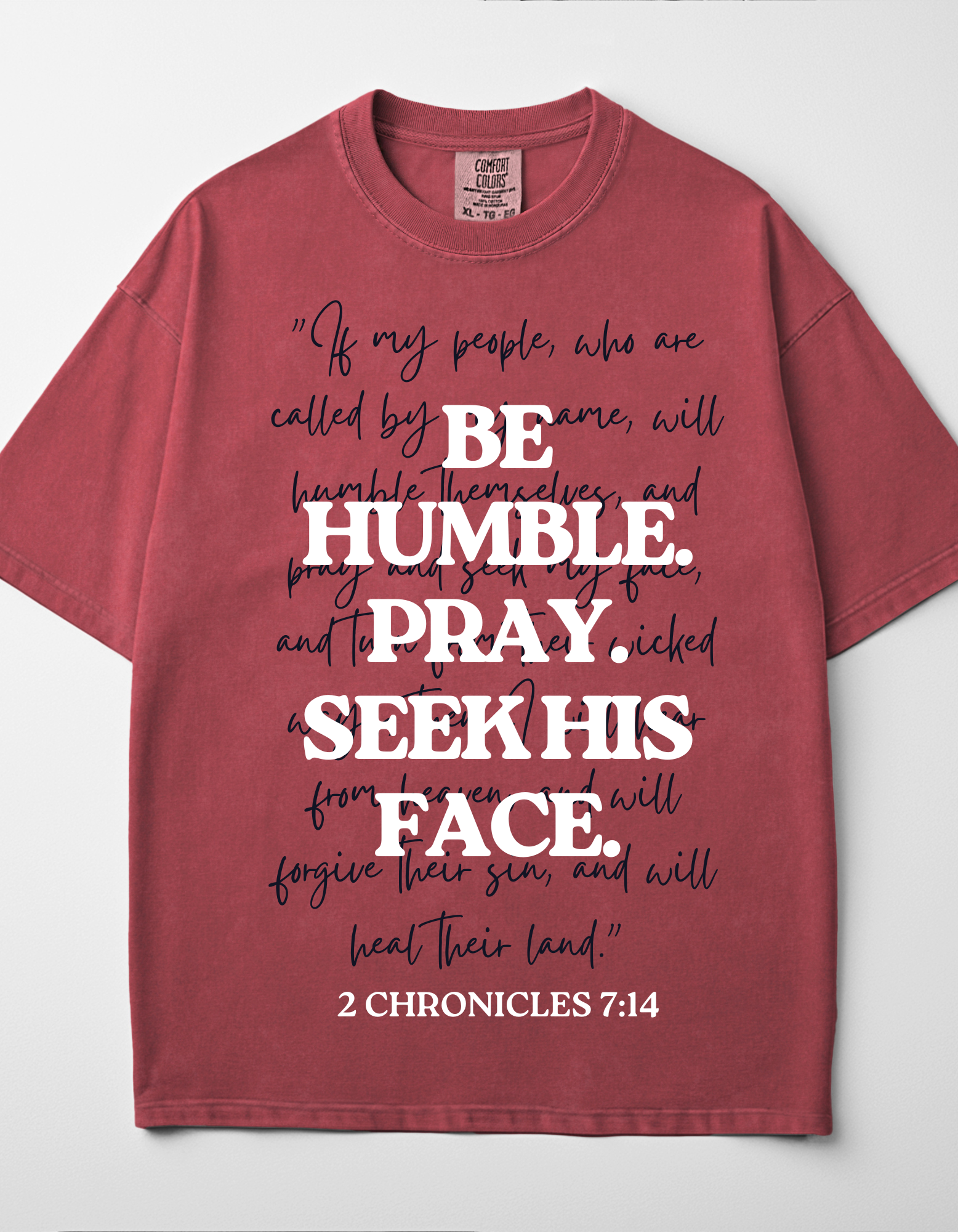 This tee is more than a statement- it's a call to action rooted in God's Word. A simple yet bold design that speaks truth in a time when our world needs healing.